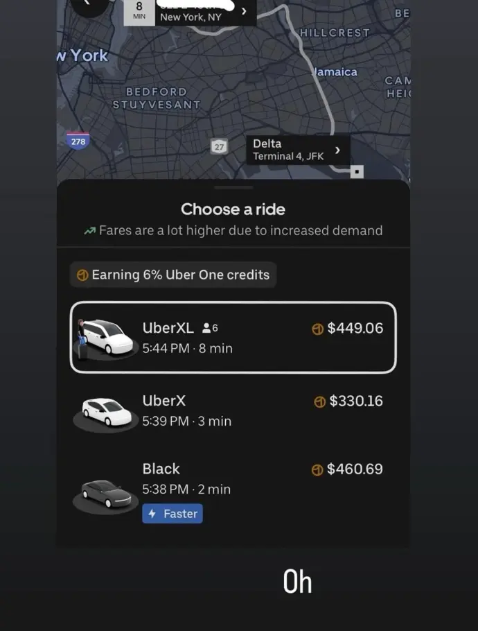 Os apps de transporte funcionam bem no JFK, mas os preços variam muito conforme o horário e a demanda.